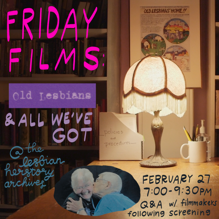 Join us for Friday Films at the Lesbian Herstory Archives on February 27th at 7:00pm. We will be screening All We’ve Got and Old Lesbians, with a Q&A featuring filmmakers Alexis Clements (All We’ve Got) and Meghan McDonough (Old Lesbians) following the viewing! Pay what you can tickets will be released at 7pm on Eventbrite…